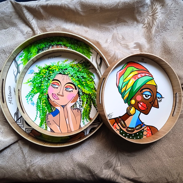 Le plateau déco " Femme d'Afrique " H.Vernise peut ajouter de la fraîcheur à votre cuisine, pièce et créer une atmosphère chaleureuse et élégante! Les plateaux imprimés ont un cadre en bois luxueux avec un fond en panneau dur de haute qualité.