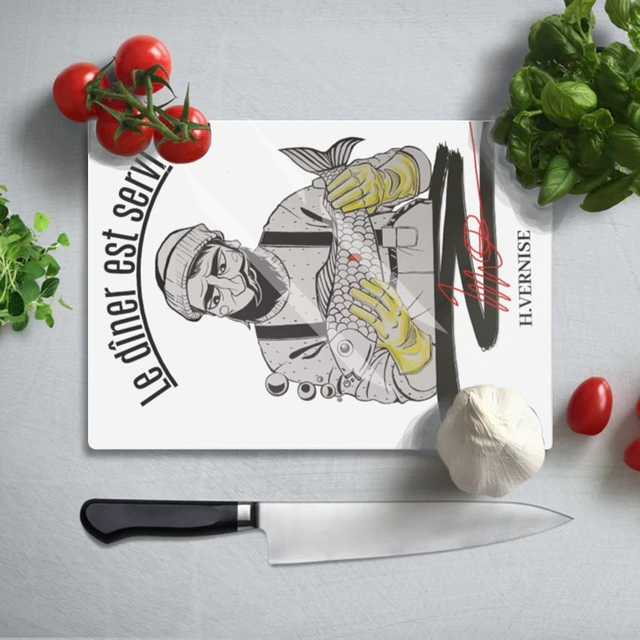 La planche à découper déco " Le dîner est servi " de H.Vernise peut ajouter de la fraîcheur à votre cuisine et créer une atmosphère chaleureuse et élégante!