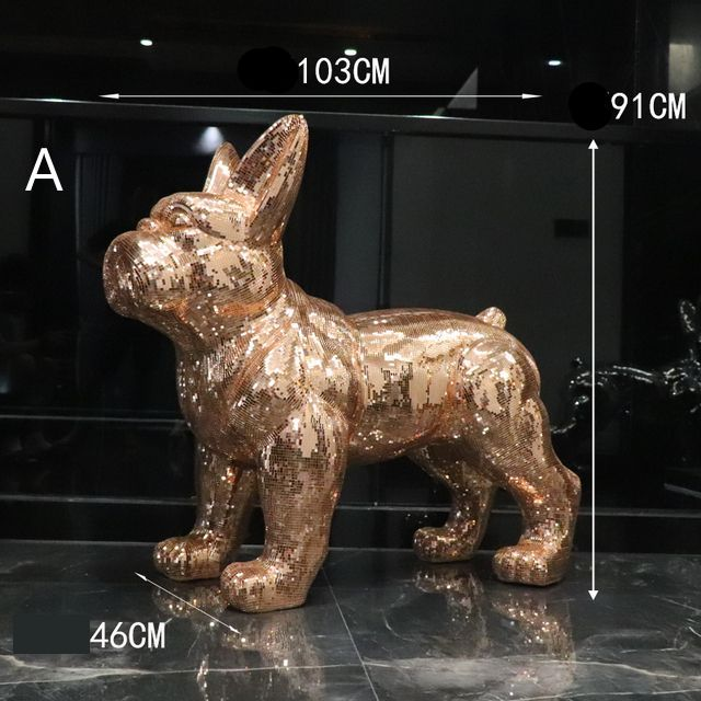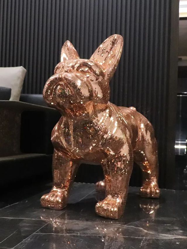 O1-1 - Statue Bouledogue strass Rose doré H.VERNISE