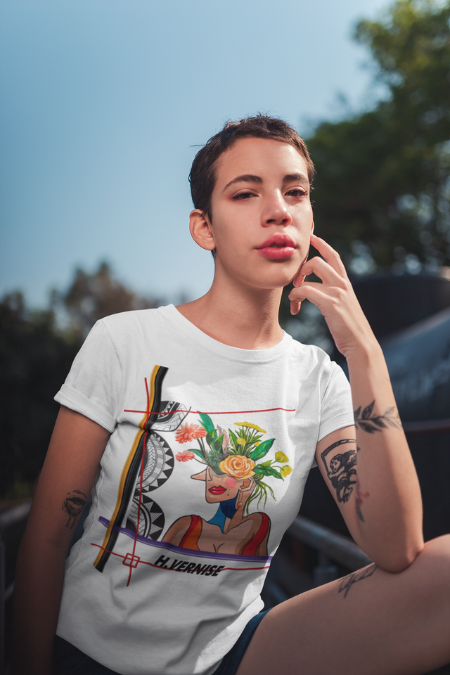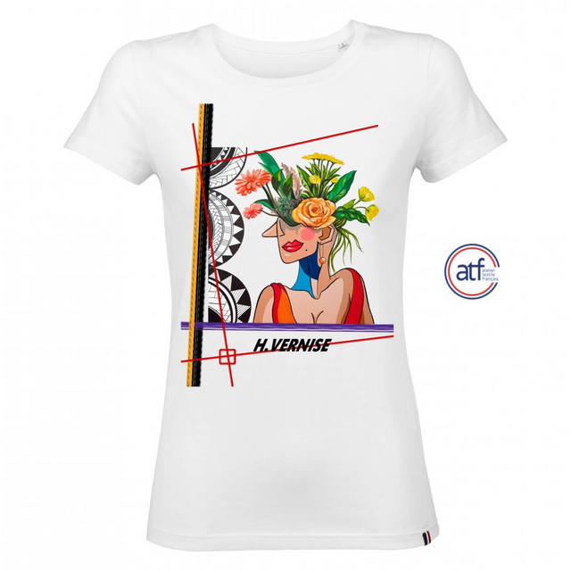 Faites le choix du made in France pour un tee-shirt de qualité, durable et local ! Le t-shirt pour femme présente une oeuvre d'art " Belle madame " à l'avant. Il est bien coupé, tout doux et très agréable à porter avec en bonus un petit drapeau tricolore cousu dans le bas pour une touche de Cocorico en plus !