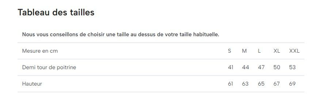 Nous vous conseillons de choisir une taille au dessus de votre taille habituelle.