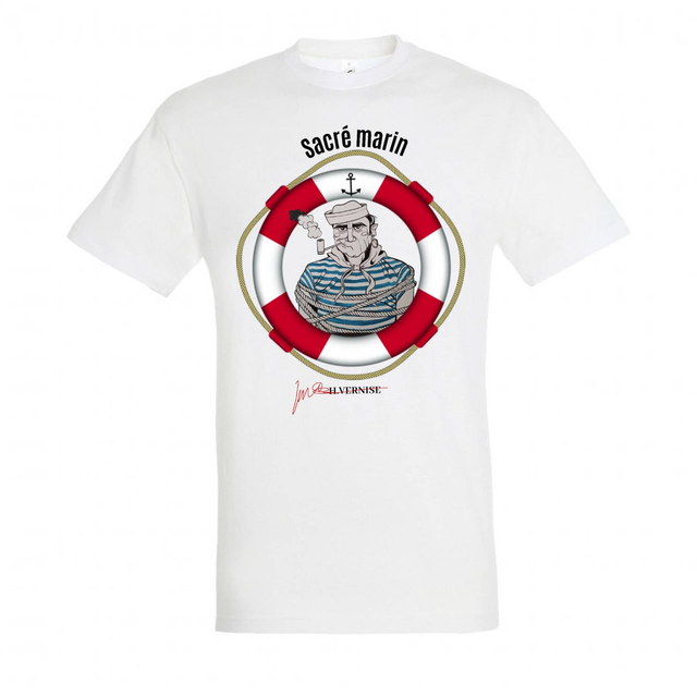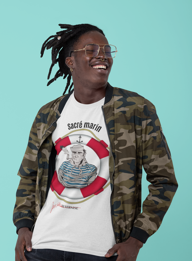 Ce t-shirt arbore un imprimé de l'oeuvre d'art "Sacré marin" pour un style moderne et décontracté avec son col rond et ses manches courtes. Présentant une coupe tubulaire en 100 % coton, il est Léger, confortable et