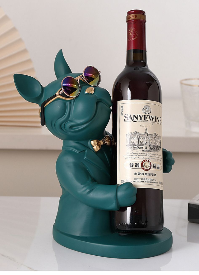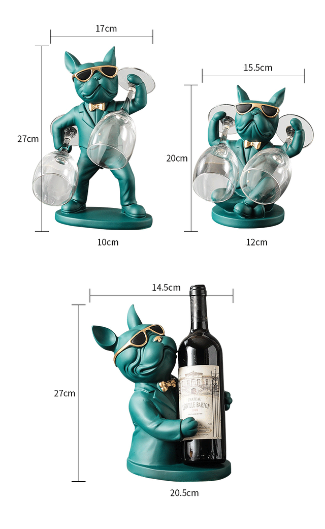 V1-1.1 - Porte-bouteille de vin et verre à vin statue de chien pour la décoration de table