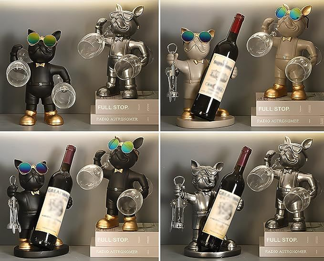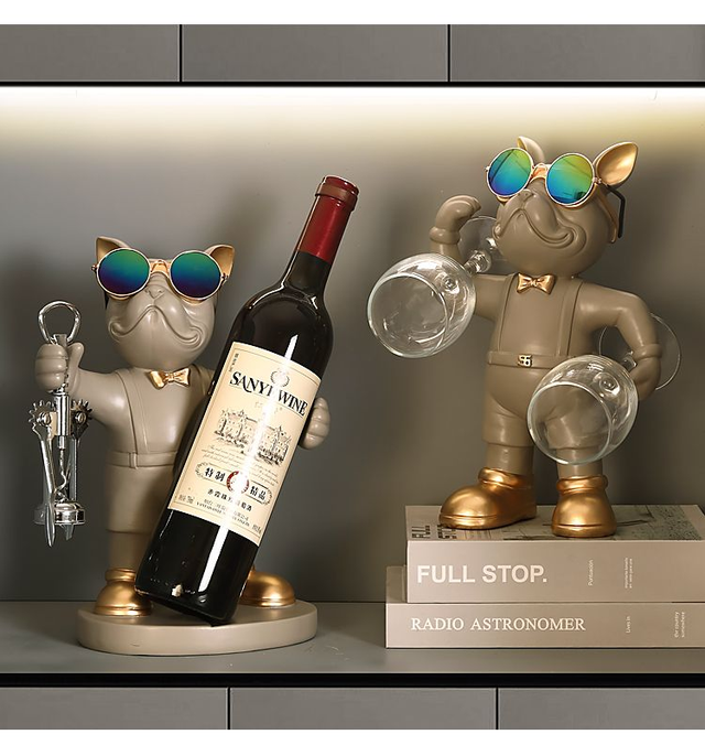 Porte-bouteille de vin et de verre à vin Bulldog personnalisé, parfait pour les amoureux des chiens, nos statues de bouledogue seront la décoration de maison moderne la plus accrocheuse.